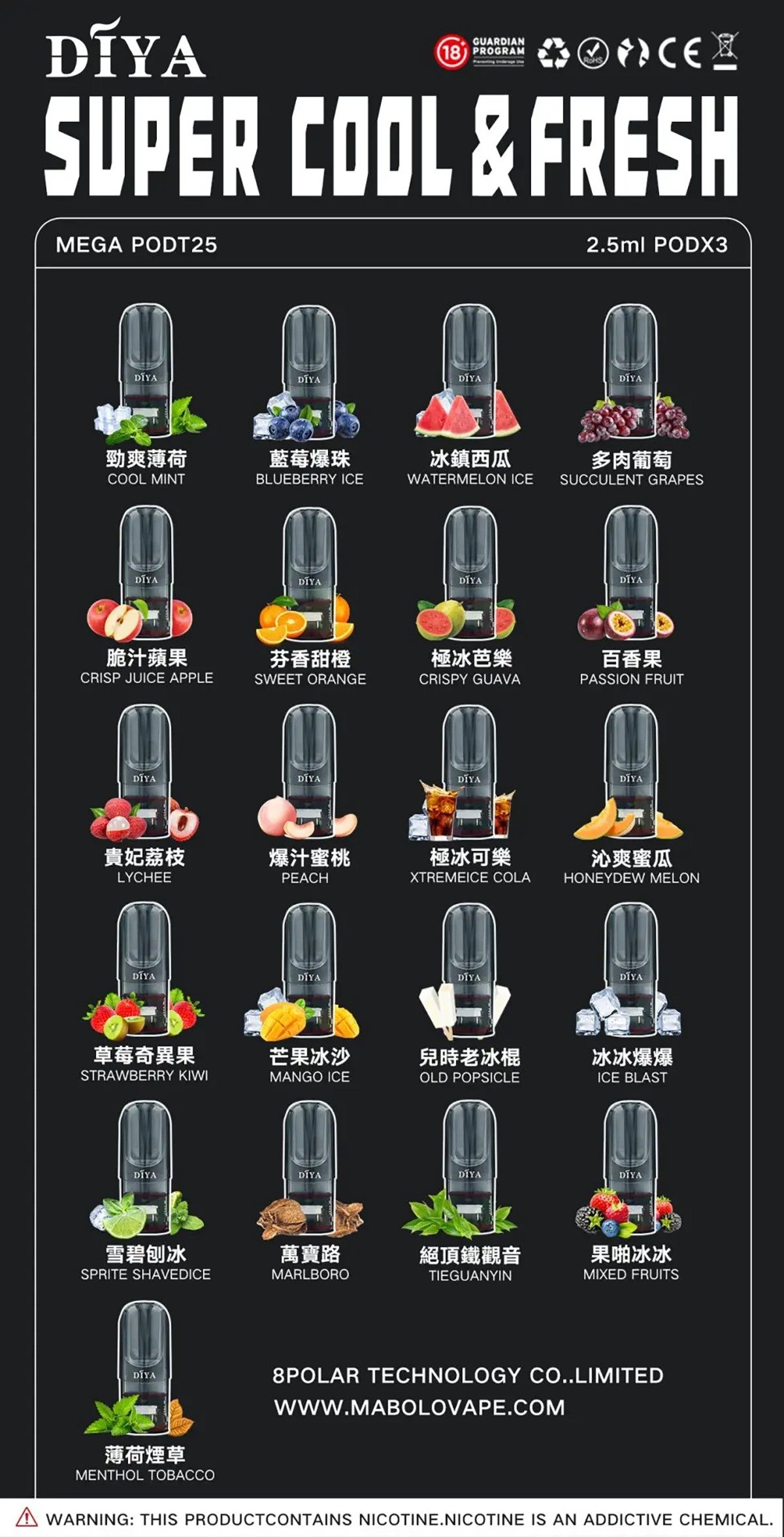 貨號: DIYA叮啞煙彈 分類: 電子煙煙彈(霧化彈) 品牌: DIYA