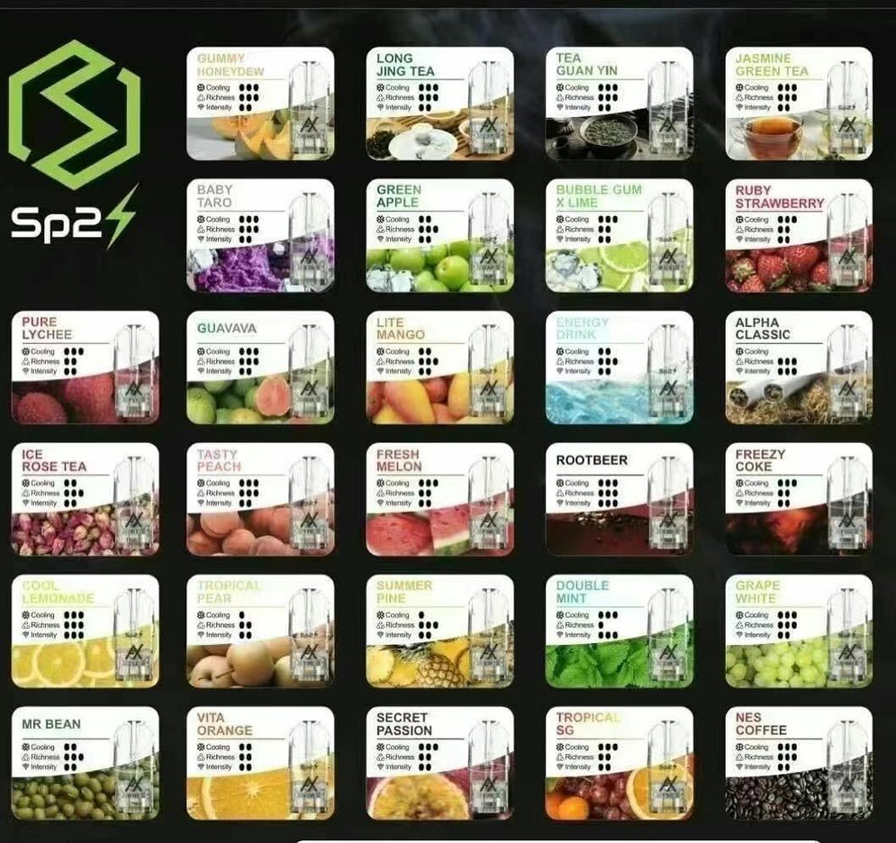 這款SP2S菸彈提供冰凍檸茶、百香果、莓果等多達數十種口味,每一款都精心調製,滿足不同偏好的用戶需求。